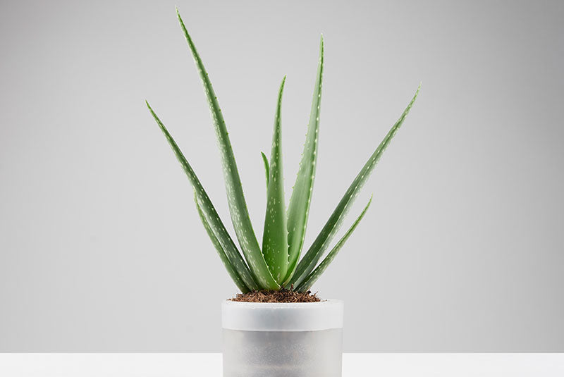 The abstract angles of the Aloe Vera plant contract with the rounded curves of the Till Planter.