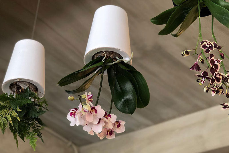 Orchids grow at funny angles in nature; off a tree bough, or a rocky ledge, so they look perfectly at home in a Sky Planter. As a bonus, rather than requiring a wooden stake to stay upright, they can hang gracefully upside down from a Sky Planter.